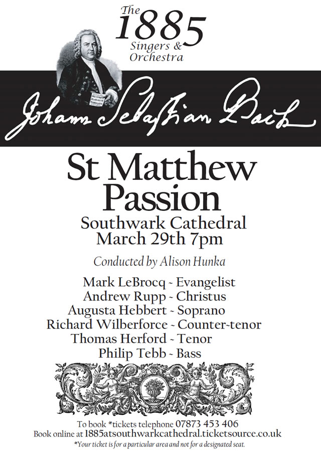 On the 29th March the 1885 Singers will be performing J.S.Bach's inspiring and moving St Matthew Passion. This concert takes place in Southwark Cathedral at 7pm.