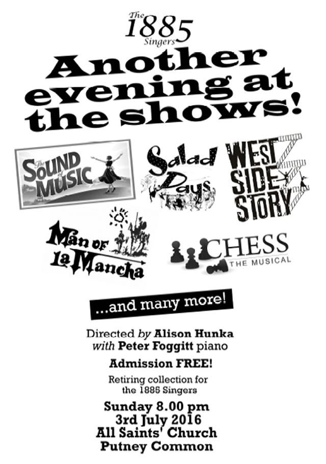 Favourite solos and choruses will be sung with enthusiasm in All Saints Church, Putney Common. on Sunday 3 July at 8pm.
