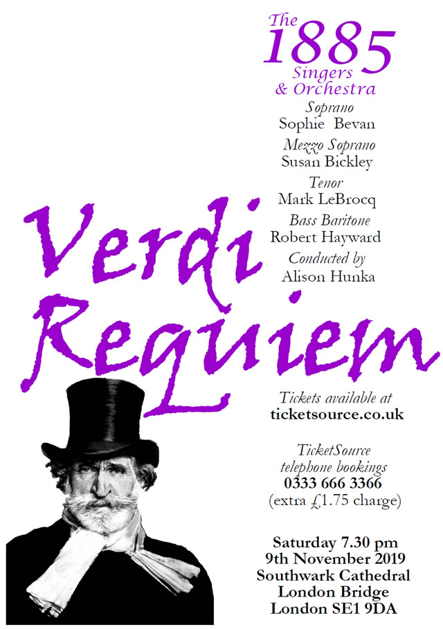 Putney 1885 Singers are giving a performance of Verdi's stunningly dramatic Requiem in Southwark Cathedral on Saturday 9 November.