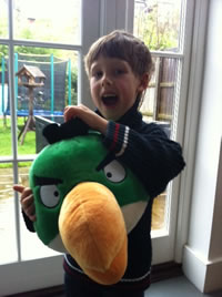 7 year old Monty Lovell (who wants to be known as ‘The Angry Bird Hunter’) found and won the yellow bird from the Mobile Phone Clinic |