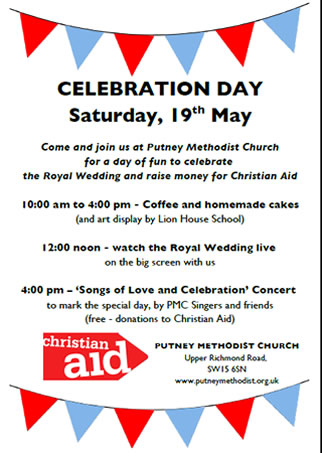 Join in at Putney Methodist Church for a day of fun to celebrate the Royal Wedding and raise money for Christian Aid