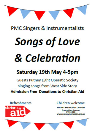 4:00 pm – ‘Songs of Love and Celebration’ Concert to mark the special day, by PMC Singers and friends (free - donations to Christian Aid)