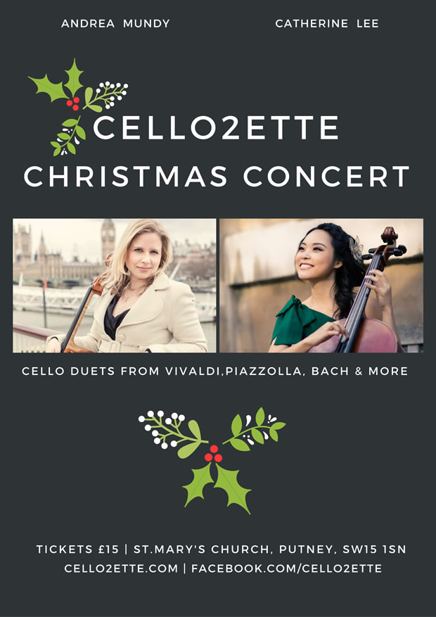CELLO2ETTE presents festive music and cello duets from Piazzolla, Bach, Vivaldi and more.