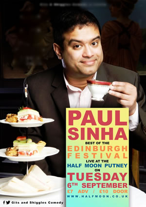 Paul Sinha is performing for one night at the Half Moon this Tuesday 6 September as the headline for Gits and Shiggles Best of Edinburgh Festival Show.