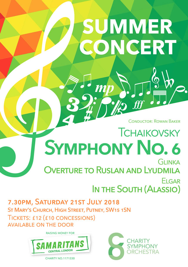 On Saturday the 21st of July at 7:30pm, the Charity Symphony Orchestra is returning to St. Mary’s Church on Putney High Street to raise money for the Central London Samaritans.