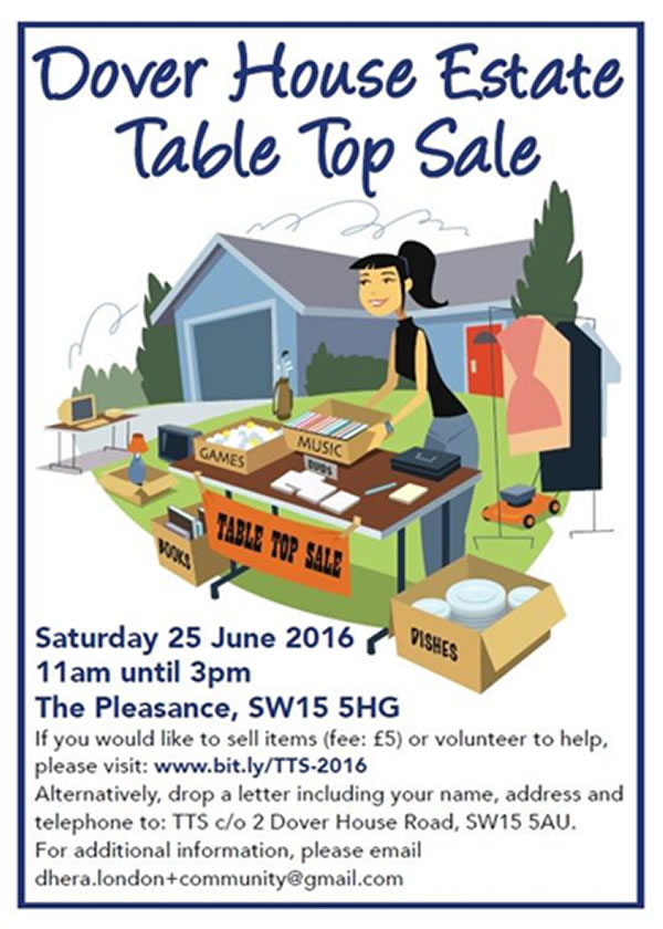 The residents of the Dover House Estate will be holding their popular Table Top Sale by selling various items in a fun-packed event for all the family.