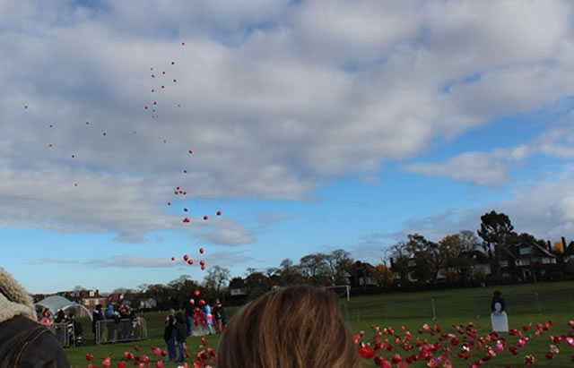 This was followed by the release of 100 biodegradable red balloons which drifted up to the north east towards the Cenotaph.