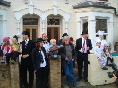 Nearly 100 turned up for the event which was filmed by ITV News and well as an independent film crew. Councillor ex Wandsworth mayor Jim Madden said a few words but the day belonged to David McKee and the present residents of Festing Road . The author personally drew Mr Benn in the dozen or so books which had been donated by the publishers as prizes for the children's fancy dress. Special mention must go to Ben Nicholson (wizard) and Zac Hyner (caveman).