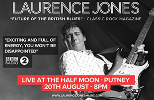Classic Rock magazine described 22 year old Laurence as "Blues Rocks youngest Talent" and his only UK gig will be at The Half Moon on 20th August 2014.
