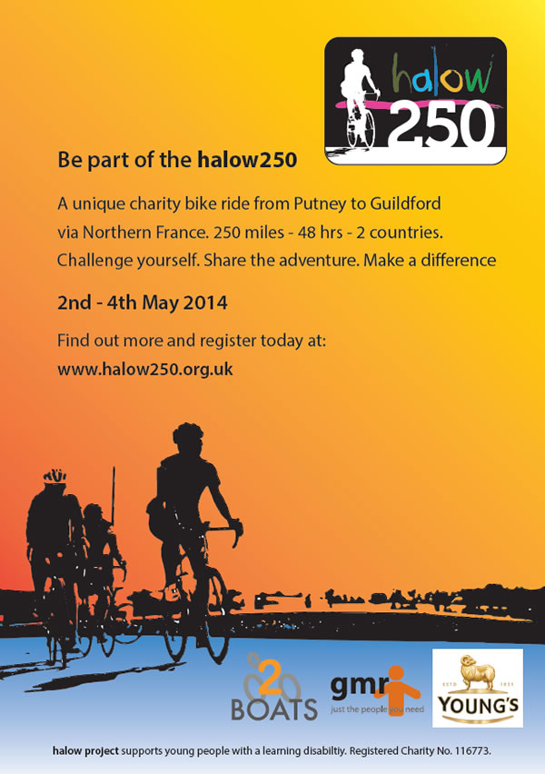 Sign up for the halow250 and become part of a simply amazing charity cycling event on 2nd May-4th May 2014. You’ll cycle 250 miles over three days through some of the very best English and French countryside. It's definitely a tough challenge – but that’s what makes it worth it. Whether you’re part of a team or cycling as an individual you’ll have an unforgettable few days in the saddle, supported all the way by the most enthusiastic and friendly events team you're ever likely to meet.