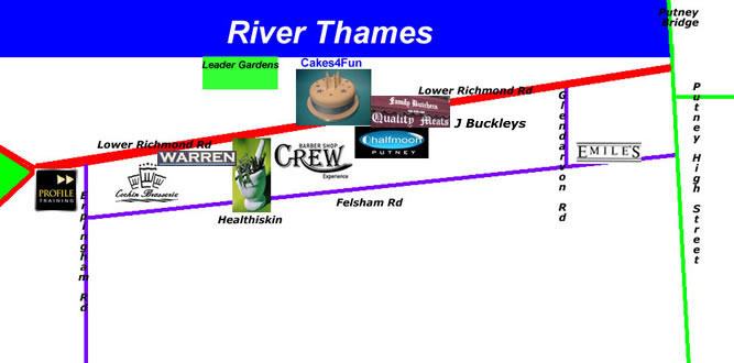 Stephen Wallace the Town Centre Manager for Putney described the Lower Richmond as niche shopping: " The Lower Richmond Roads unique mix of shops brings a richness to Putney's retail landscape that's unusual in London. Whether you want to dine out, or simply buy flowers, specialist sausages, a custom Mini, decorating materials, party cakes and accessories or fine art, the Lower Richmond Road has it all!"