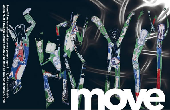In the creation of Move, individuals aged between 4 and 83 enjoyed around 90 free places in workshops run by eight professional artists, kindly hosted by five charities, a Battersea primary school and a celebrated social enterprise. Together, their collective inspiration produced distinct and lively art from scratch, all based on their own reflections on music, dance and theatre. Experience their sensational work on show for the first time, some of which will be available to purchase.