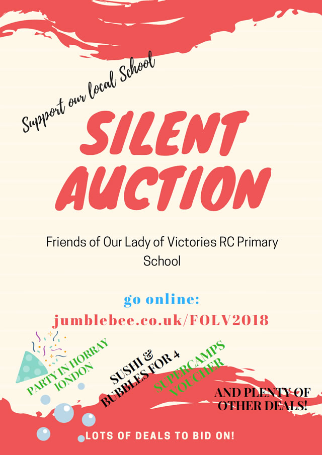 The parents association of Our Lady of Victories RC Primary School on Clarendon Drive (registered charity number 1120039) are holding their annual silent auction to raise money for the school. The auction will run until 10pm on Thursday 22 March 2018.