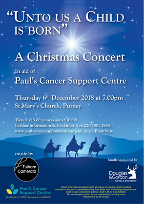 The Paul’s Christmas Concert takes place on Thursday 6 December at 7.00pm, at St Mary’s Church, Putney High Street.