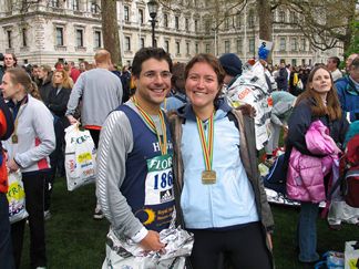 fiancé Howie Fine (seen left) of Putney finished in 3:43:00 and 4:30:09