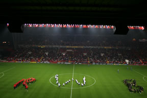 and Fulham exited the pitch at half-time, their place will be taken by 100 local youngsters.