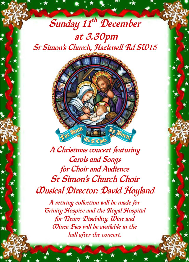 “Unto Us Is Born A Son” - A Christmas concert featuring Carols and Songs for Choir and Audience with St Simon's Church Choir & Musical Director David Hoyland.
