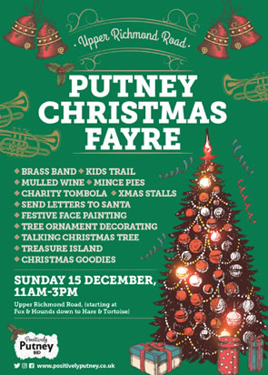 This festive fayre takes place on Sunday 15th December 2019, 11am – 3pm on Upper Richmond Road in Putney. For full details, please visit positivelyputney.co.uk