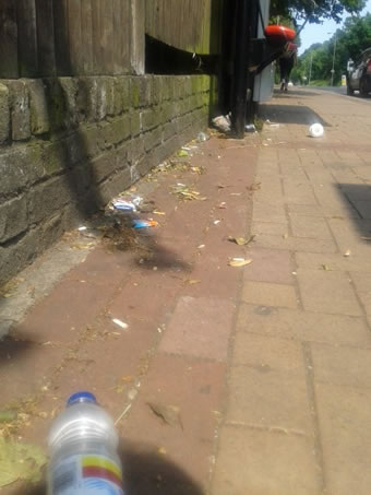 Rubbish by bus stop on Putney Heath