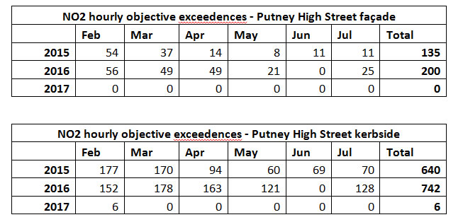 Provisional data from both of pmonitoring stations on Putney High Street suggests a major fall in pollution episodes. Wandsworth Council is claiming that this is due to sustained investment in the heavily polluting bus fleet taking effect.