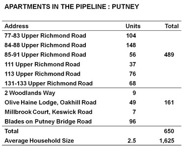 The Putney Society voiced concerns for future volume of commuters from both stations as 489 units of housing will appear on the Upper Richmond Rd plus a further 161 are also planned on surrounding streets: