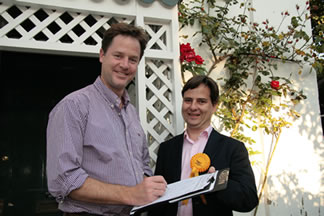 | Liberal Democrat Leader Nick Clegg signs James Sandbachs' petition |