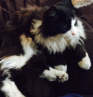 Currently Banksy has has shorter fur on one side of his neck were he had a cut.