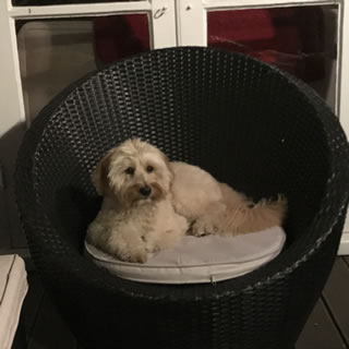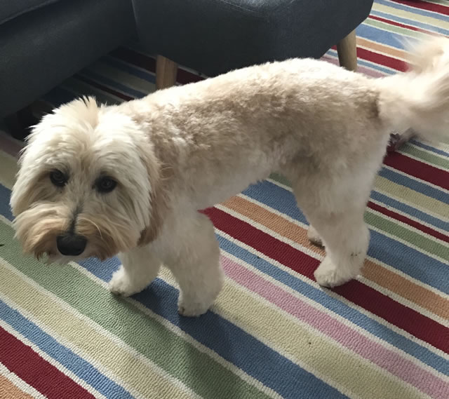 Reggie the blond Cotonnoodle who went missing yesterday (26th July) from his dog sitter on Chartfield Avenue whilst his family are on vacation, was found last night 2.5 miles away in Southfields.