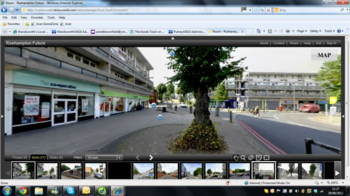 “The StickyWorld tool lets you take a virtual tour of Roehampton and post sticky notes around the place about what you like, what you don’t and what improvements you want to see. And anyone can take part. If you don’t have a computer at home simply use one at Roehampton Library – and if you don’t want to have your say online, you can always stick written comments directly onto maps at either the library or the area housing office.”