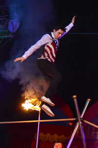 Performances run around two hours, and feature high wire, knife-throwing, juggling, trapeze, plate-spinning, rope-walking, whip-cracking, and gentle friendly clowning, as well as the nerve-tingling thrills of the Globe of Death – motorcyclists looping the loop inside a tiny steel sphere. And watch out for the unique Aerial Robot!
