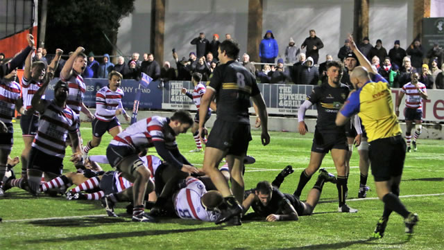 The large crowd who braved the icy weather were treated to a red-hot, thirteen-try, local Derby that was decided in the last play of the match.
