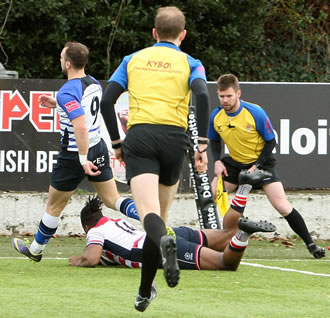 Bam Fadahunsi scored after five minutes before Joe Munro and Ellis went over, Paolo Odugwu getting a try for the visitors.