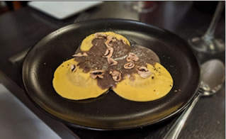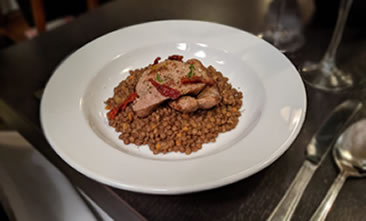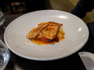 I continued with the earthy tomes for my main course, a sausage and lentil stew with Mediterranean herbs. Heart warming, don't expect a British stew with loads of gravy, the lentils absorb the liquids absorbing the herbs and seasoning.