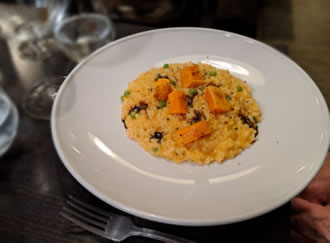 I thoroughly enjoyed the braised beef ravioli with a mushroom sauce and sauteed mushrooms - wonderful combination of earth flavours on such a cold evening. The second pasta dish enjoyed by the table was the Green Ravioli; a light combination of ricotta, basil and sage, consumed so quickly I am not sure it hit the sides! Whilst the third member ordered the pumpkin risotto which received the thumbs up - be warned pumpkin makes a sweetish risotto.