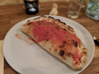 The Calzone pizza (£9.95)was well received and had olives added to the mozzarella, mushrooms, basil & ham on request - I am not sure it hit the sides as the plate was emptied rapidly!