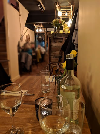 The restaurant is more airy than in its last guise with 'rustic Italianesque' areas of brickwork peeking through the paintwork and light work incorporated with old wooden ladders hanging from the ceiling. Sadly the toilet facilities upstairs have not been upgraded with the restaurant.
