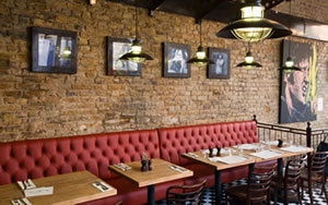 The decor is rustic with bare brick, and a mix of wooden & tiled floors. In the rear corner you can see the pizza chef creating the pizzas & garlic breads in the pizza oven. Other foods are cooked in the small basement kitchen.