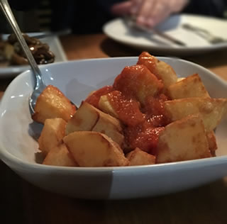 It would not be tapas with out the 'boys' favourite patatas bravas (£4.50) and they were not disappointed with the generous portion, but I think they went back for seconds. My only concern is that they will be asking to go back rather too often over the summer!