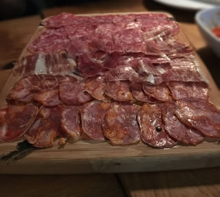 Starting the bank holiday with a family reunion a tapas suited all parties and at 9.30pm eating Spanish style seemed the right thing to do. With fabulous vegetarian options - mixed mushrooms with garlic and chillies (£5.95) and Padron Peppers with rock salt (£5.50) to melt in the mouth Pata Negra (£13.95 for a plate) or combined with salchicho and chorizo on the Iberican meat platter (£18). From the sea the garlic prawns were ordered (twice)!
