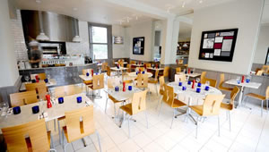 The restaurant is bright and airy with artwork tributes to local authors E.M Forster, Leonard Woolf, Mary Shelley and Laurie Lee.