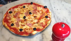 The restaurant was just emptying out as we arrived as we booked a late lunch (1.50pm - try to remember being a teenager!). The son ordered garlic bread with mozzarella (£3.95) followed by a La Reine pizza (£9.55) from the classic range with a coke (£2.30). He tucked in vociferously and gave a big thumbs up!