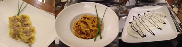 fresh tagliatelle - delicious but not the most generous of portions for a man sized appetite however keenly priced at £8.50. Pictured right is the Tortelloni Vechia Modena; a pasta filled with spinach and ricotta cheese served with vecchia Modena sauce smoked bacon, cream and drops of traditional Balsamic vinegar of Modena (£9) - yes we assumed that was ravioli! I have decided that I need to have a lesson in cooking with pasta! All were widely appreciated for flavour and texture and price.