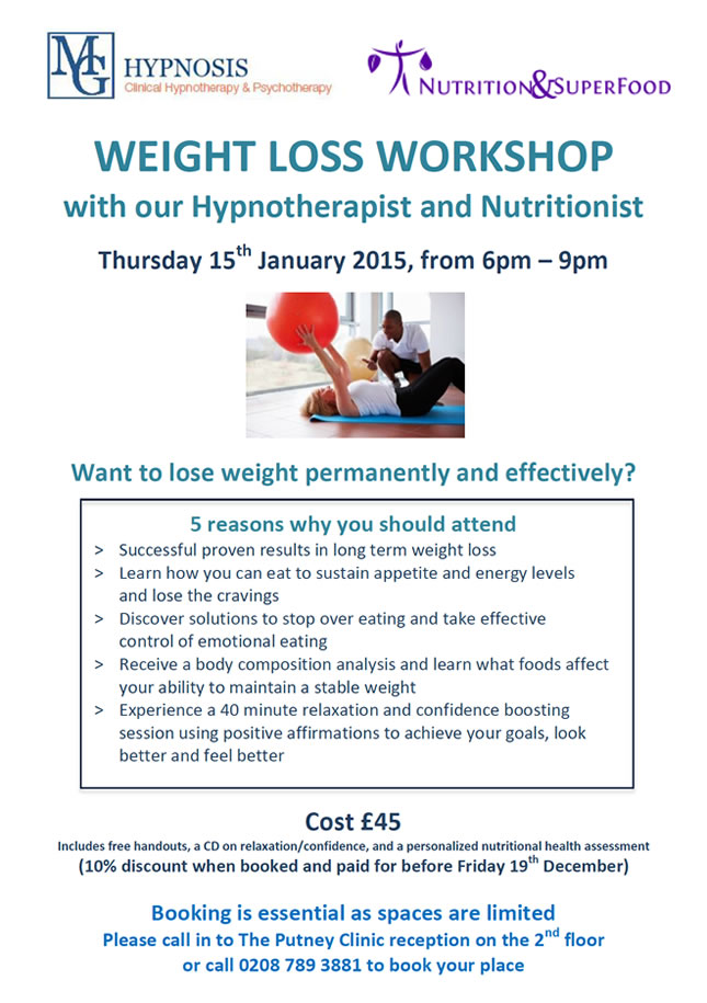 10% discount if you sign up for Weightloss workshop before 19th December 2014