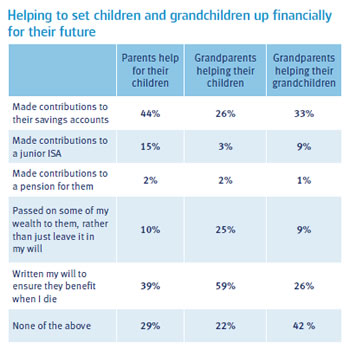 More than a third of parents (35%) and two fifths (43%) of grandparents would not ask anyone within their family for advice about finances. And despite evidence that a large volume of money is moving freely between generations, only one in four (25%) people say that their family financial plans involve all the generations. However, the attitude of new parents is very different. Almost four in five parents (79%) with children under the age of five would ask the family for money (79%) and three quarters (75%) would ask the family for financial advice.