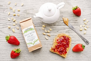 A brew inspired by the classic PB & J combo, ‘Peanut Butter & Jam’ tea blend contains Sencha green tea, peanut brittle and dried strawberry pieces