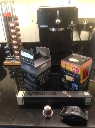 The Putney based company offers pods which you can buy on the high street at Waitrose, Wholefoods and most recently in April 2014 TESCO's, unlike Nespresso which is on line or at their boutique stores on Gloucester Rd, Regent Street & Oxford Street. They have made them more accessible with in store sales at Curry's & department stores such as John Lewis, Debenhams & Ely's.