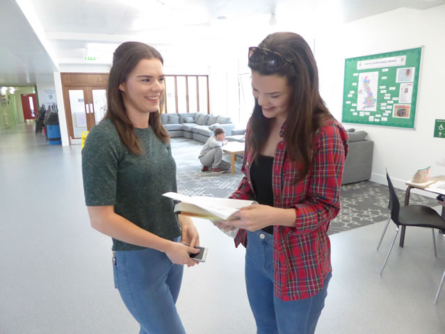 Megan Griffiths opens her results with her sister Lauren