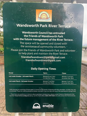 The council has asked the Friends of Wandsworth Park to manage the Terrace, it overlooks the Thames at the Putney end of the park. Volunteers will be opening and closing it every day. The aim is to turn it into a sensory garden.