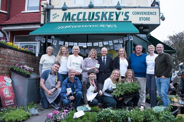 Volunteers join Justine Greening MP, Barry Roe of Rotary Putney, Charles Runcie, Chair of the local residents association (SGRA) and Cllr Guy Humphries