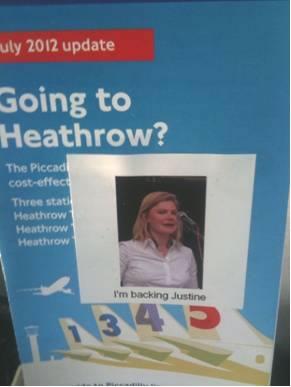 "I'm backing Justine" poster campaign appears on tube